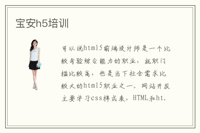 可以说html5前端设计师是一个比较考验综合能力的职业,就职门槛比较高,也是当下社会需求比较大的html5职业之一。网站开发主要学习css样式表,HTML和html5语言,其中HTML是网站开发的内容体现,html5是网站开发的行为体现。宝安h5培训机构就都非常的专业,在宝安h5培训是快速掌握建网站技术的方法。宝安html5培训的相关机构还是很多的,具体宝安html5培训的机构有哪些呢。宝安h5培训主要就是关于网站开发前端方面的培训。所以在宝安html5培训,技术是非常不错的选择。其中不错的几所宝安h5培训机构有:中软卓越,达内教育,达内教育和甲骨文。那么学做网站要掌握哪些语言呢。学做网页就是挺不错的,可能开始会觉得枯燥不喜欢,但是慢慢就会觉得很轻松。