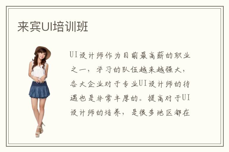UI设计师作为目前最高薪的职业之一,学习的队伍越来越强大,各大企业对于专业UI设计师的待遇也是非常丰厚的。提高对于UI设计师的培养,是很多地区都在计划的事情,因此越来越多的投资商开始投资成立了很多大大小小不同品牌的专业UI培训机构。那么,你知道来宾UI培训班吗?你觉得来宾UI培训班的教学质量好不好呢?来宾UI培训班是很多人选择学习UI设计的平台,相信大家的眼光是正确的。