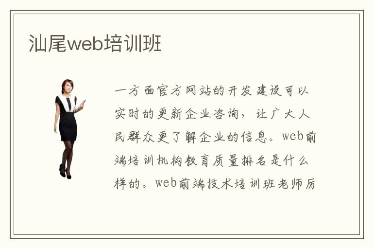 一方面官方网站的开发建设可以实时的更新企业咨询,让广大人民群众更了解企业的信息。web前端培训机构教育质量排名是什么样的。web前端技术培训班老师厉不厉害,许多老师都有很强的专业水平,培训速度也比较快,内容很清晰,同学也相当满意。如果缺乏规划,遇到难题也没有老师指点,可能会遇到特别多的障碍。web前端专业知识涉及面很广,有些知识可能要应用到软件开发、软件设计和页面设计等等多个领域。而正因为汕尾web前端培训水平高,很多人选择去汕尾培训的时候,经常考虑一个问题,那就是汕尾web前端培训费用高不高。如果愿意报班,可以先看看汕尾web前端培训费用,了解各种影响因素。毕竟每年有大多数的人都来汕尾web前端培训。