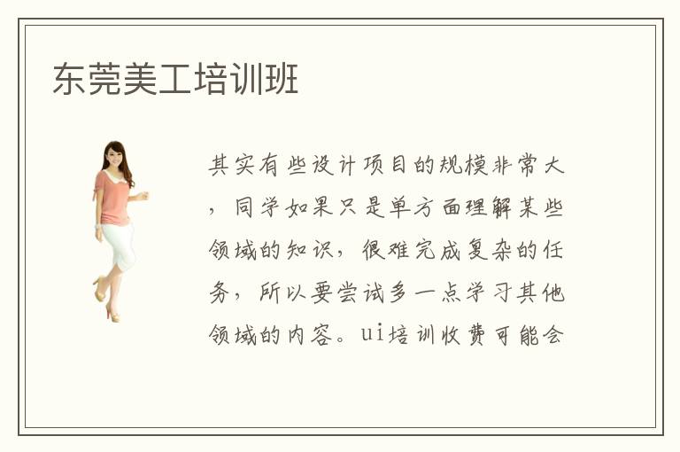 其实有些设计项目的规模非常大,同学如果只是单方面理解某些领域的知识,很难完成复杂的任务,所以要尝试多一点学习其他领域的内容。ui培训收费可能会在3500元到7500元,总体来说并不高,而且老师可介绍多方位的ui设计技巧和原则,安排大量的教学内容,促使学生迅速提高ui设计能力。东莞UI培训班地理位置是哪里。东莞ui培训哪家好,其实要看辅导机构的教学课程,比如部分学生只关注基础,不妨找到擅长入门教学的辅导机构。UI设计作为目前最具有发展前景的计算机专业,每年都有大批大学新生报名学习UI设计专业。为了更快达到入门级的水平,学生可以关注东莞港ui培训班,了解一些基本的ui设计方法,结合一些经典的设计案例进行深入的学习,也能为以后的ui设计提供技术的支持。
