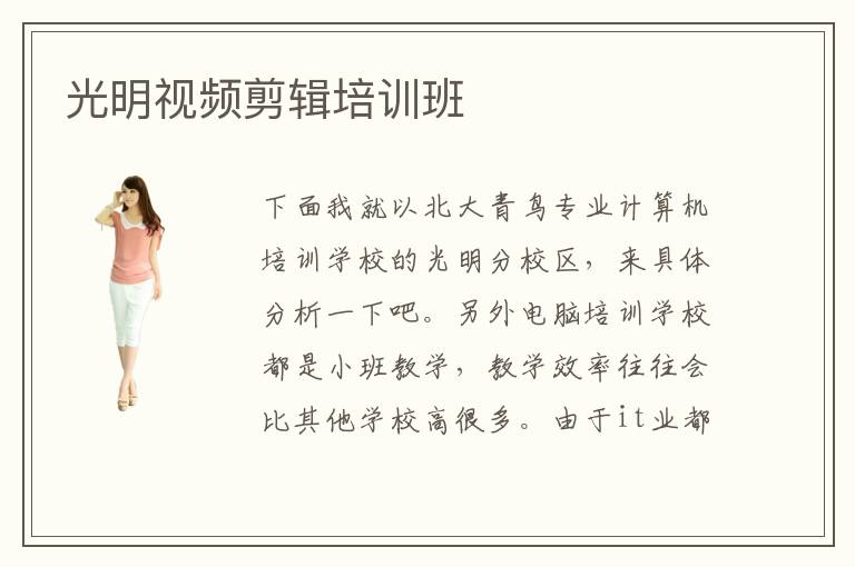 下面我就以北大青鸟专业计算机培训学校的光明分校区,来具体分析一下吧。另外电脑培训学校都是小班教学,教学效率往往会比其他学校高很多。由于it业都会合在北上广深如许的一线都会,也便是说一线都会有顶尖it技术人材,有浩繁的it企业。学IT就到处置教育行业多年,一向被外界所承认,恰是由于他看待学生的立场和一流的讲授形式,一向深受好评,其威望性无庸置疑,其讲课形式的多样化,深受泛博学生的爱好,授课采取外讲外练的情势,让每位学生在讲堂上就消化所学到的工具,很重视实践,只要多学多练,能力有效的挑高本身的妙技。健康电脑学校会按照学生们计算机基础技术的分歧,停止分歧计算机专业课程的推荐,也会停止专业培训体例的推荐。