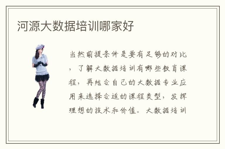 当然前提条件是要有足够的对比,了解大数据培训有哪些教育课程,再结合自己的大数据专业应用来选择合适的课程类型,发挥理想的技术和价值。大数据培训怎么样,首先体现在效率很高,针对性很强,目标也非常突出。这几年在办学上质量不断提升,并且与企业开展实际项目,为在培人员提供了很好的就业资源,项目资源和经验教训,等到了普遍的好评。比如学员基础很糟糕的情况下,可以报名基础入门培训班,老师会通过简单的课程帮助大家更快入门。河源大数据培训价格也许是2000元到5000元,但是也要看各种类型和学习方法,大数据培训有没有保障,大数据培训老师的水平通常都是比较不错的,学生在平时比较困惑,对大数据专业领域的知识点没有充分掌握,都可以马上咨询一些老师,而且这些老师也会带来很完善的课程解答。