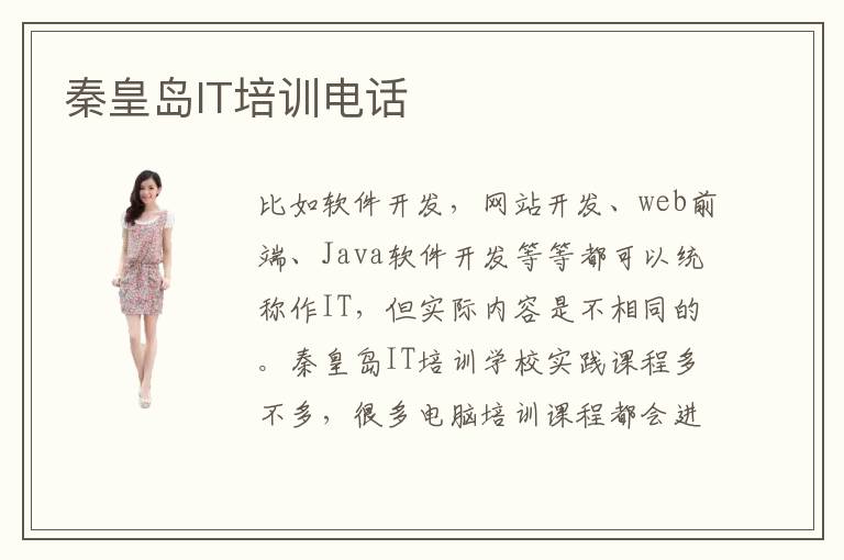 比如软件开发,网站开发、web前端、Java软件开发等等都可以统称作IT,但实际内容是不相同的。秦皇岛IT培训学校实践课程多不多,很多电脑培训课程都会进行一对一的指导,再采用实践的课程,让学生能将理论投入到实践当中,吸收知识变成具象的内容,学习的效果也会更加突出。为了让自己的能力变得更强,那么不能够忽略平时的学习方案,学习的技巧和学习的思维等等,可能就很容易出现困境。秦皇岛IT培训机构报价表可能是在3000到1万元之间,但是课程类型以及教育模式,教育内容等等有区别,不能一概而论。第三、需求合适和你本身的需求相异的培训机构必定不克使你足意。秦皇岛it培训学校教学理念是以就业为主吗。IT培训机构有哪些培训内容,要看每个机构的教育水平,有些会提供技术培训班,还有会提供专业的应用班和辅导班等等,这些课程内容都应该要根据学生自己的需求和实际的应用情况来考虑。