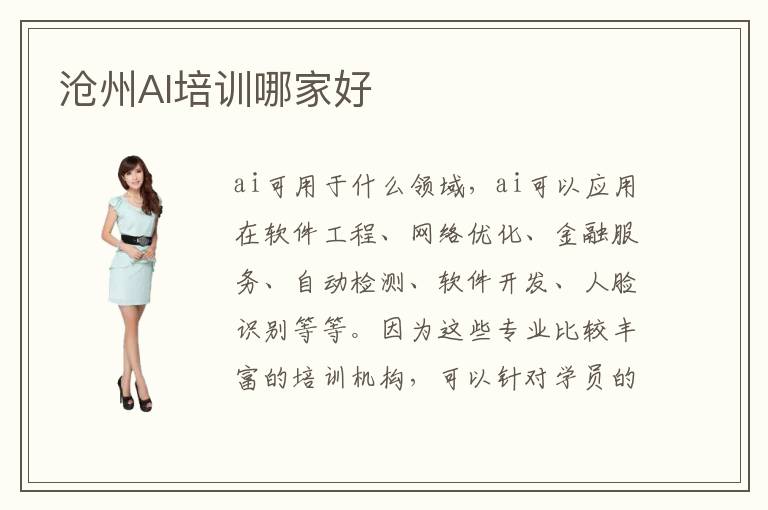 ai可用于什么领域,ai可以应用在软件工程、网络优化、金融服务、自动检测、软件开发、人脸识别等等。因为这些专业比较丰富的培训机构,可以针对学员的情况来考虑培训的方案,提升专业优势。比如有些人工智能研究人员的技术水平很强,专业突出,也能够解决工作当中的很多难题,那么待遇的会翻倍。人工智能入门教学非常重要,会让大家的专业能力变得更强,基础更为扎实。沧州人工智能培训费用大概区间在3000~25000元,因为课程的难度以及课程科目类型不一样,所以教育的课程费用也存在区别的。报名之后,可以掌握前沿的应用,学习许多工作项目,出色完成大量的工作任务。人工智能网上培训效率很高,原因在于老师和同学之间在互联网上有更多交流,学生有问题时,可以马上通过上网的形式向老师提问,老师能够马上解答。