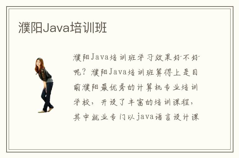 濮阳Java培训班学习效果好不好呢?濮阳Java培训班算得上是目前濮阳最优秀的计算机专业培训学校,开设了丰富的培训课程,其中就业专门以java语言设计课程培训为主的濮阳Java培训班。学员们在濮阳Java培训班学习相关专业技术以后,越来越多的学员能够进入到国内最优秀的软件开发设计公司,这与濮阳Java培训班的高质量的教学效果息息相关的,大家可以去濮阳Java培训班体会一下。