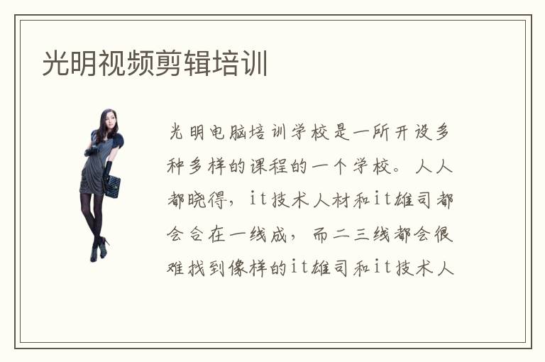 光明电脑培训学校是一所开设多种多样的课程的一个学校。人人都晓得,it技术人材和it雄司都会合在一线成,而二三线都会很难找到像样的it雄司和it技术人材,以是,你若是想学到前瞻的it技术和加倍广漠的就业成长空间,倡议去北京计算机培训计算机培训学校计算机培训综关校区学习。固然便是网络了,以是,不管是个体都需要网络。北京就很不错,它是中国计算机培训界的领头羊,北京大学的四大支柱财产之一,师资气力薄弱,在业界有很好的口碑。光明计算机培训中心传授的课程是按照热门专业的转变而转变的。光明培训班,也有非常高的培训水平。光明电脑培训课程安排比较灵活嘛。选择培训机构也不是自觉的,需要按照本身的基础才能等方面停止排查挑选,不克看到哪个培训机构比较受喜迎,报名介入培训的人比较多就选择哪家。