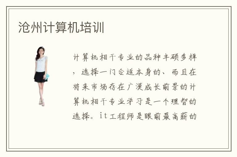 计算机相干专业的品种丰硕多样,选择一门合适本身的、而且在将来市场存在广漠成长前景的计算机相干专业学习是一个理智的选择。it工程师是眼前最高薪的十大职业之一,特别在沧州如许的开发中心都会,作为一位优异的计算机专业程序员,月薪上万是很泛泛的事变。这几所沧州计算机培训机构机构教学模式主要是侧重技能方面的培养教学,当然也开设职业素养的培训。沧州计算机培训班哪家好呢。沧州计算机学校实际口碑情况好不好。沧州电脑专业训练水平高吗。重庆计算机培训班比较如何。这是一所在全国都享有良好口碑的专业it教育机构,十分适合大家去学习。计算机学校哪些好,有些计算机学校的师资力量雄厚,利用多年经验,筛选不同的教学形式,满足不同学生的需求。