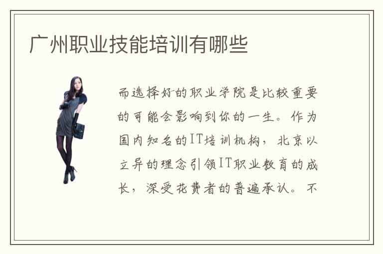 而选择好的职业学院是比较重要的可能会影响到你的一生。作为国内知名的IT培训机构,北京以立异的理念引领IT职业教育的成长,深受花费者的普遍承认。不过其实现在职业学院也能够发挥不错的效果,尤其是越来越多学校觉得优势不如大学,因此不断提升就业水平,会有不同的培训方案和实现方案,不断更新教学的模式,让学生可以更快掌握专业的技能。想要学习一些专业的技术,得到一些专业的学校去学习。这促使了一大批职业学校的兴起,因为这些职业学校正式培养职业技术性人才的基地。现在很多学校的质量参差不齐,很多人感到应该不小,如果只看价格的话是很难区分出来的,所以在选择之前要多做对比。广州职业技术学校的办学主旨在于对职业技能的培养,而非传统高中的文化教育。