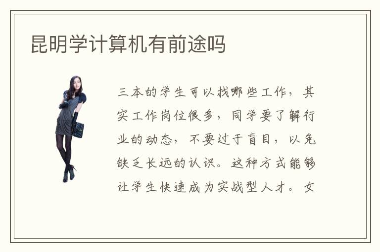 三本的学生可以找哪些工作,其实工作岗位很多,同学要了解行业的动态,不要过于盲目,以免缺乏长远的认识。这种方式能够让学生快速成为实战型人才。女生学什么手艺好,女生要学习手艺的话,可以看看较偏文科的专业,比如室内设计,软装设计,行政管理,金融管理,外贸服务等等。不过在学习专业类型的时候,要很重视自己的能力,找到进步的方向,因为专业也越来越多,如果没有与时俱进,容易被其他同行淘汰,无法在工作上突出优势。计算机培训学校昆明地域分校的讲授师资气力怎么样。不同的培训机构有不同的收费标准,会有很多方面的考虑因素,因此学费并不是考虑的全部,要考虑的有很多。昆明计算机培训学校环境好不好呢,一般要从教学环境,老师的学术水平等等来判断,如果教学的质量比较高,学校也会更加重视环境的建设,配备设施更加全面,那么可以让学生拥有更高的学习质量。