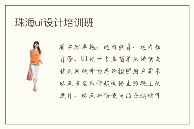 有中软卓越,达内教育,达内教育等。UI设计专业简单来讲便是将利用软件的界面按照用户需求以及市场风行趋向停止雅观上的设计,以及加倍便当的凸起软件的功效而做出的交互方面的设计。在学习期间,很多同学都不懂怎么学习,但是老师会陪伴大家,一步步积累经验,使大家的成绩都越来越好。UI培训机构的讲授品质怎么样。有些学校教学的水准很高,培训标准很严格,也有很丰富的教学经验,有不错的教学保障,有利于减少很多学生的负担。究竟什么样的珠海UI培训学校是最适合自己的呢。不少学生在自学ui设计专业的过程中,都会发现容易出现遗漏的内容,而且可能会错误理解某些专业知识。photoshop培训学校除了展示多种功能外,还会结合实践案例,为大家介绍不同版本的使用方法,在工作中真正发挥优势。