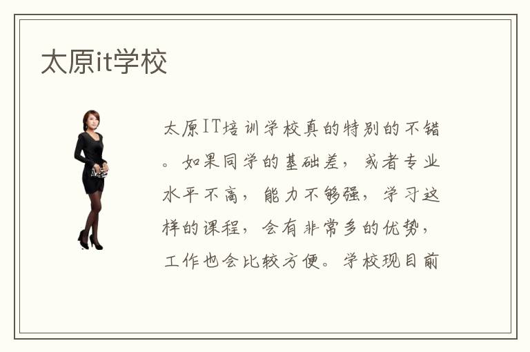 太原IT培训学校真的特别的不错。如果同学的基础差,或者专业水平不高,能力不够强,学习这样的课程,会有非常多的优势,工作也会比较方便。学校现目前开展了电子商务、会计、计算机网络技术、影像与影视技术等等课程。这时可以考虑太原it培训机构,老师会为大家介绍许多重要课程,还能不断巩固和优化知识结构。女生学IT什么专业好。若想获得进步,可以报名辅导班,把很多重要的知识掌握。it行业作为当下的热门行业,it的许多相关岗位都属于高薪职业。IT辅导得花多久,其实这个问题的答案因人而异,主要是部分IT专业的学生刚刚入门,学习一些简单的原理和基本应用,投入时间不需要太多,一般一两月即可。事实上竞争压力比较大,许多同学都很容易找到工作,但很难有机会从事更加高端的工作岗位。