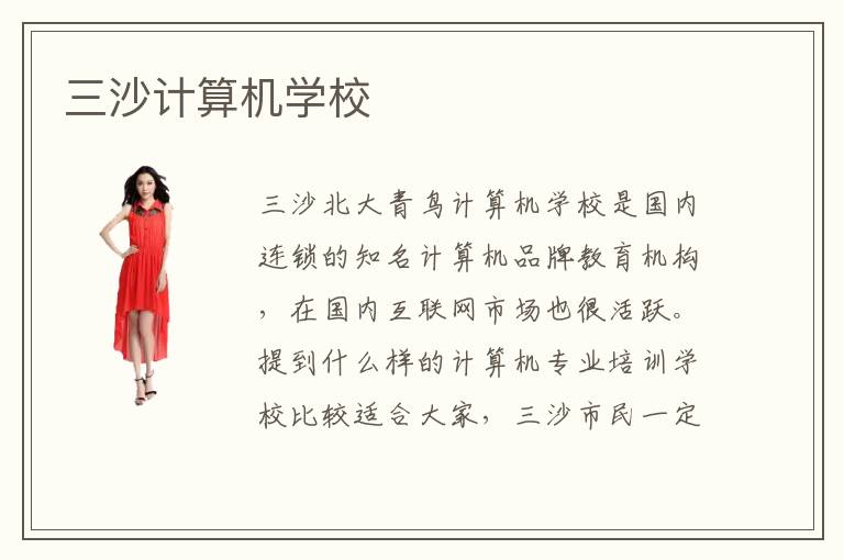 三沙北大青鸟计算机学校是国内连锁的知名计算机品牌教育机构,在国内互联网市场也很活跃。提到什么样的计算机专业培训学校比较适合大家,三沙市民一定会第一时间想到三沙北大青鸟计算机学校。为什么三沙北大青鸟计算机学校在计算机教育行业的影响力这么大呢?这都是由于三沙北大青鸟计算机学校的专业化教学以及独具特色的培训方式,让更多在校学员成为了优秀的计算机工程师。