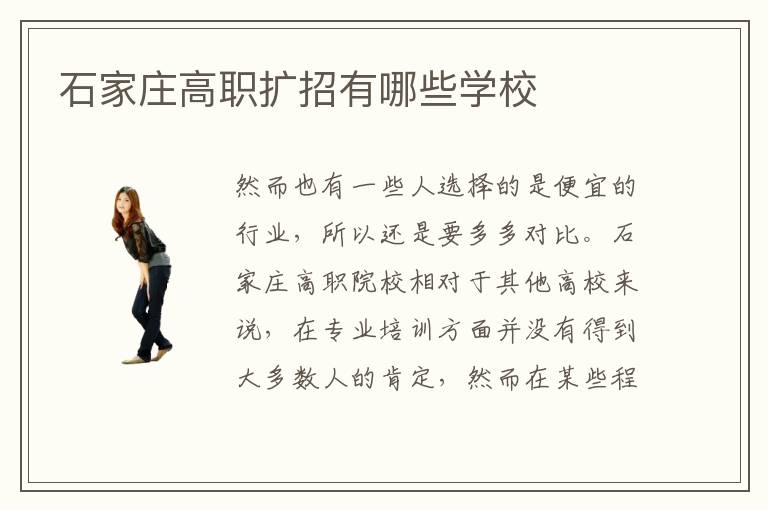 然而也有一些人选择的是便宜的行业,所以还是要多多对比。石家庄高职院校相对于其他高校来说,在专业培训方面并没有得到大多数人的肯定,然而在某些程度上石家庄高职院校还是具有很大优势的。石家庄高职培训机构是一个合适交换心得和学习体味的平台,师生之间的间隔感会被减弱、减小。那末,石家庄高职院校的讲授培训事实存在着哪些上风呢。如果想要选择一些比较专业的学校,当然要多了解一些比较擅长的专业。同学们可以根据自己的爱好进行选择。首先安排的必然是可以踏实学生们专业基础的课程,频频练习基础能力确保专业技术加倍顺遂的学习。那么高职院校是一种不错的选择。有些学生只关注到价格,却忘记了考虑一下高职院校的优势劣势,是很容易找到一些劣质的学校。