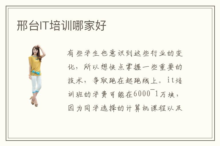 有些学生也意识到这些行业的变化,所以想快点掌握一些重要的技术,争取跑在起跑线上。it培训班的学费可能在6000~1万块,因为同学选择的计算机课程以及辅导班类型都不同,报名预算也会有变化。IT培训品牌口碑如何,大多数口碑优越,排名靠前,技术都可以得到优质保障,但也要先对比清楚,并不是每个机构都如此。it培训气氛非常好,大家可以考虑这些机构,然后由周围的环境带动自己学习。it可以自学吗,自学it其实也可以,不过有些同学没方向,基础几乎为零,难度可能就会更大,大家要学会编程软件以及程序等等。要是有需求,还可以找到专业辅导班,由老师讲解课程。高中生学IT就业前景如何。邢台IT培训学校基本介绍一般可以从三个角度来判断,包括学校的教学资源,老师的水平,学生的生活环境等等,如果学校拥有这几个要素,那么可以做个判断培训,学校的成果还是相当不错的。