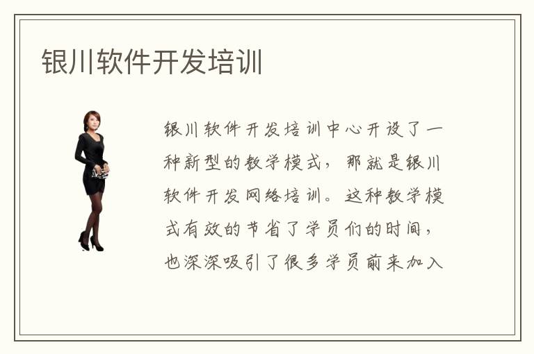 银川软件开发培训中心开设了一种新型的教学模式,那就是银川软件开发网络培训。这种教学模式有效的节省了学员们的时间,也深深吸引了很多学员前来加入培训。新奇的东西总是可以提高学员们的兴趣,银川软件开发网络培训就是个例子,每位学员在网络课程培训过程中都拥有专注的精力以及很高的学习积极性,这样的培训模式大大提高了学员们的学习效率,知识点便能更快更好的让学员们吸收。