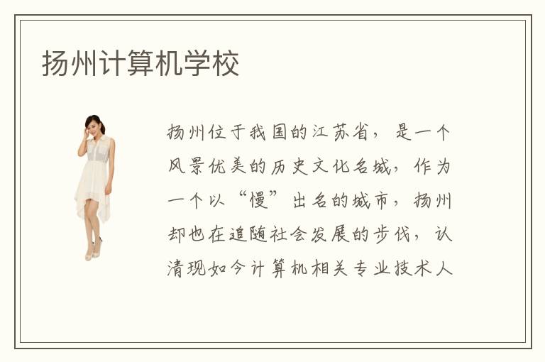 扬州位于我国的江苏省,是一个风景优美的历史文化名城,作为一个以“慢”出名的城市,扬州却也在追随社会发展的步伐,认清现如今计算机相关专业技术人员的发展前景广阔,逐渐开始提高对于计算机相关专业技术人才的培养意识,成立了越来越多的扬州计算机学校。针对不同的计算机基础,学校会安排不同的培训班,一般会有计算机基础培训班以及计算机提升培训班。