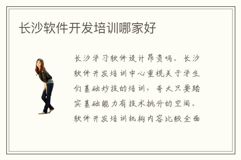 长沙学习软件设计昂贵吗。长沙软件开发培训中心重视关于学生们基础妙技的培训,夸大只要踏实基础能力有技术挑升的空间。软件开发培训机构内容比较全面,对于很多计算机专业的人员而言,如果没有掌握这些知识点,可能就会遇到很多竞争压力和挑战等等。软件要学什么,软件专业的学生要学习很多知识,比如软件架构、软件功能设计、软件开发与设计软件程序应用。软件开发培训有没有用,软件开发培训机构当然有很好的作用,首先老师会将不同阶段的知识点、重点和难点梳理出来,然后通过典型的案例分析为大家讲解,然后利用重要的任务和作业,让大家快速巩固和提高。若想要了解更多课程信息,都可以看看长沙软件开发培训机构电话,由工作人员展示许多课程的优缺点,这样同学在筛选的时候就会方便很多。