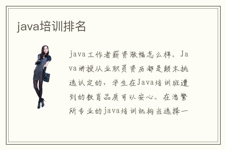 java工作者薪资涨幅怎么样。Java讲授从业职员资历都是颠末挑选认定的,学生在Java培训班遭到的教育品质可以安心。在浩繁所专业的java培训机构当选择一家靠谱的培训机构,关于良多想要学习java专业的新手来讲是很坚苦的,也难为了良多有着选择纠结症的学生。等到学生的能力逐渐提高,学习的效果逐渐发挥出来,老师会要求学生成为一些简单的技能和操作的方法,独立完成各种简单的项目。大家要想快速提高java应用能力,可关注java培训机构,得到更多编程专业教学的机会。Java培训班有专业的Java设计专业的教员停止指点讲授,把学生们的注重力高度会合在讲堂上。其实这些课程也比较容易,但有些同学要求比较严谨,希望掌握更前沿的高水平的技术,所以会找到java培训班,老师安排教学内容,从而发挥学习优势,减少学习过程的挑战,赢得更好的成绩。