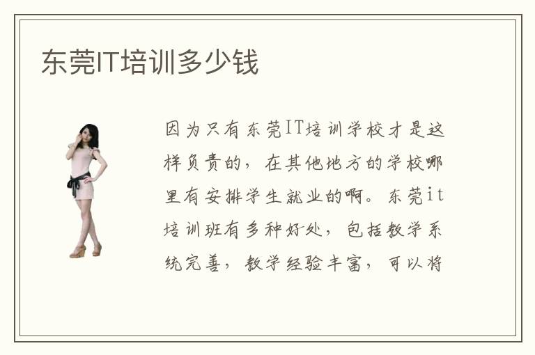 因为只有东莞IT培训学校才是这样负责的,在其他地方的学校哪里有安排学生就业的啊。东莞it培训班有多种好处,包括教学系统完善,教学经验丰富,可以将主干课程和选修课程划分出来,而且也会利用大量的实践环节,协助大家掌握工作方面的要求。东莞IT培训学校教育质量大多数都是比较遥远的,很多老师都可以为学生制定专业的学习计划,也可以帮助学生发挥更强的优势,找到自己的潜力和优点,针对性进行培养。对于很多学生而言,没有合适的学习方法,找不到学习目标,很容易影响进度,但有了机构的帮助,问题便可迎刃而解。东莞it培训学校还会展示大量的教学模式,包括it远程教育、一对一辅导、it入门辅导等等,让大家深入理解计算机领域的内容,然后发挥出良好的技术优势。