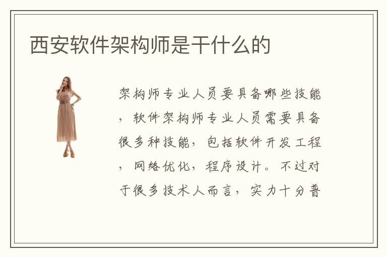 架构师专业人员要具备哪些技能,软件架构师专业人员需要具备很多种技能,包括软件开发工程,网络优化,程序设计。不过对于很多技术人而言,实力十分普通,投入大量精力学习,但效果仍然不够显著,难免会比较慌张。另外,学习软件架构师的技能之前,要明确自己的方向,有些业余爱好者只是为了丰富自己的兴趣,可以报名软件架构师的兴趣辅导班。架构师行情相当不错,有很多技术人员在应聘这些岗位的时候,都能找到自己满意的工作,但是要知道,软件架构师越来越多,专业要求也比较高,技术人员要多多学习,争取赢得更多专业的优势。西安架构师培训学校的教学内容非常充实,而且每个阶段都有教学侧重点,而不会存在大量的垃圾课程。软件架构的技术课程有点多,而且难度逐年提高,不少同学只学习浅层知识,没有挖掘未知领域,学习深层的技术,所以成绩很普通,一直无法展示个人的工作价值。