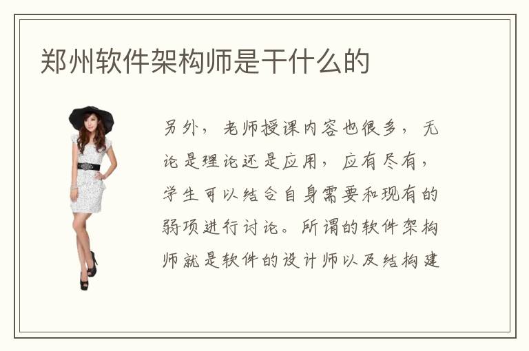 另外,老师授课内容也很多,无论是理论还是应用,应有尽有,学生可以结合自身需要和现有的弱项进行讨论。所谓的软件架构师就是软件的设计师以及结构建构师的总称,在建筑学上比较容易理解,但是在软件工程上概念比较抽象。软件架构师的工作要求很严谨,也非常重要,如果没有良好的软件架构,在程序设计和软件开发、系统运行的过程中,都可能会出现问题。架构师应用范围有哪些,软件架构师的要求较多,比如技术工程师要学习软件开发,软件架构,软件设计等等重要的知识。一些同学感觉自己的效率太低,所以会报名辅导班,希望老师轻松提供指导,带来更多高效率的训练方案。架构师的就业前景相当不错,有些软件架构师在刚刚毕业,就能够得到1万到15000元的工资。