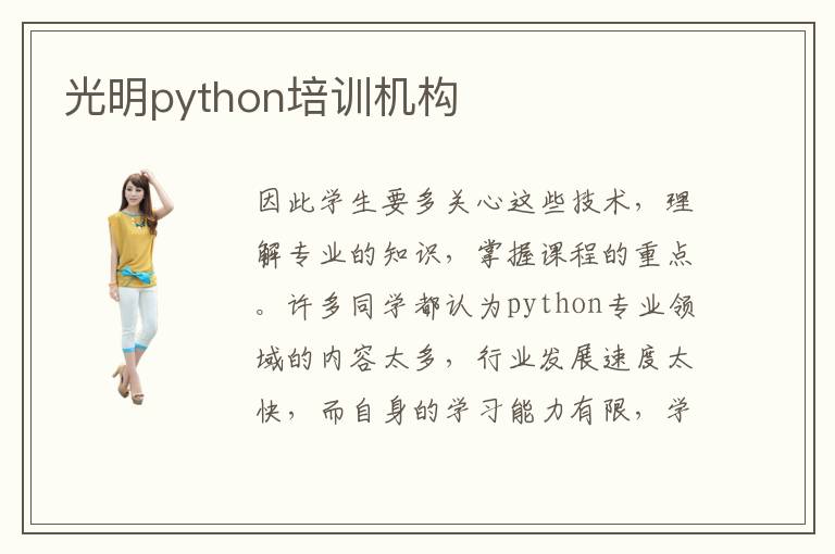 因此学生要多关心这些技术,理解专业的知识,掌握课程的重点。许多同学都认为python专业领域的内容太多,行业发展速度太快,而自身的学习能力有限,学习效率很低,无法跟上行业的步伐。python课程有一点点复杂,许多学生的理解能力不是很强,学过之后马上忘记,基本没有好的成绩。在学习计算机python编程的时候,同学要看清楚每一个应用的领域和范围,毕竟有些编程语言的适用范围比较小,容易受到局限,可能很难实现大家的要求。python行业的前途怎么样,行业发展前途很好,工资待遇不错,而且就业机会也很多。但具体的情况因人而异,大家在挑选时,不妨多多咨询,了解每个学校的教学成果。python培训机构作用非常重要,老师可以结合学生的接受能力以及学习的进度,选择合适的python课程,跟进不同阶段的学习状况,帮助学生更快理解python专业的知识点。