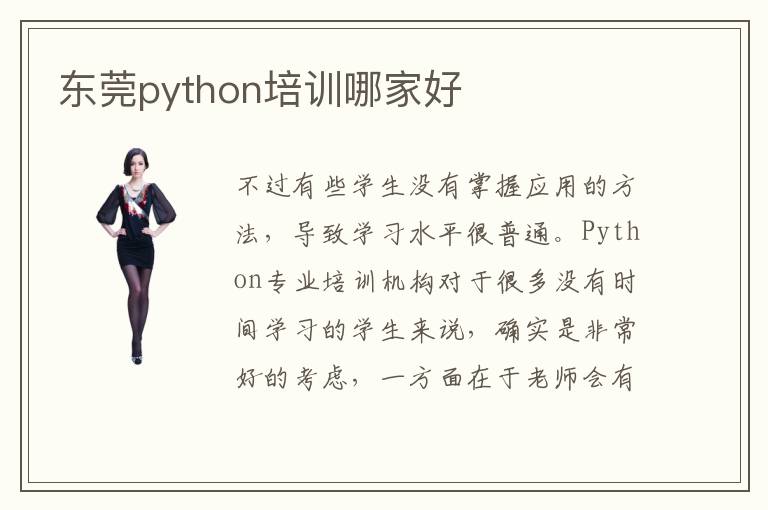 不过有些学生没有掌握应用的方法,导致学习水平很普通。Python专业培训机构对于很多没有时间学习的学生来说,确实是非常好的考虑,一方面在于老师会有非常明确的学习目标方向,大大提高Python的学习效率,又可以减少学生的岔路,有更加明确的学习针对性。如果有兴趣,学生可以报名参与,不会浪费很多时间。据调查可知,东莞python培训机构口碑良好的有:达内教育,中软卓越,甲骨文这几家。如果学习的方法不是很靠谱,又或者是没有太多实践的课程,那么以后可能就不会有很多技术成果的优势。python教学有哪些优势,教学优势在于会结合工作领域的项目来进行培训,技术人员若想提升自动化测试或者游戏开发等技能,都可以与老师交流,表达自己的学习需求,然后由老师制定课程。