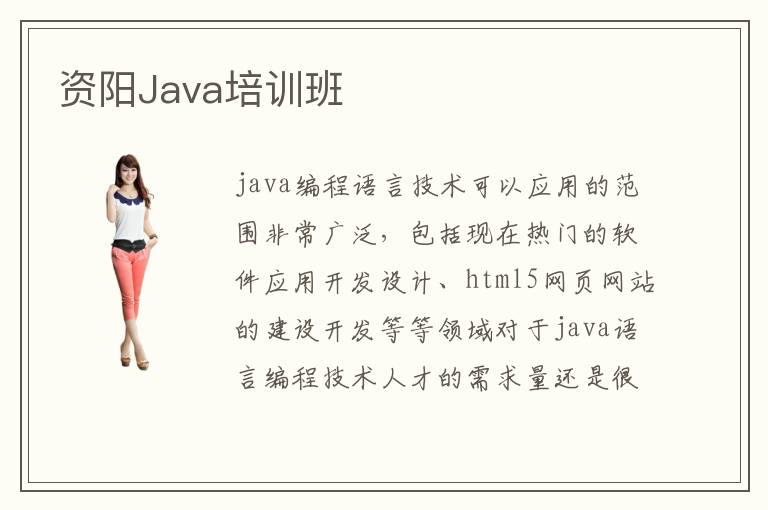 java编程语言技术可以应用的范围非常广泛,包括现在热门的软件应用开发设计、html5网页网站的建设开发等等领域对于java语言编程技术人才的需求量还是很大的。资阳Java培训班致力于培养更多技术高超、经验丰富的java语言编程技术人才,因此在课程安排方面会比较注重基础技能与实践操作相结合的方式,更适合哪些想要成为优秀java语言编程设计师以及想要长期从事编程行业的人。