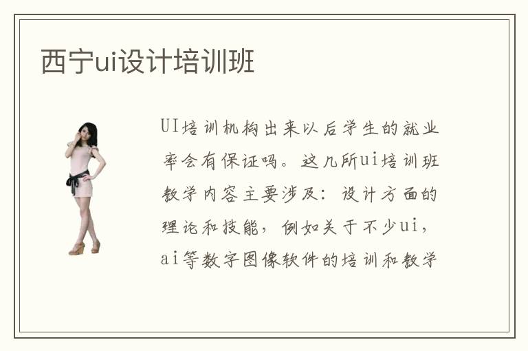 UI培训机构出来以后学生的就业率会有保证吗。这几所ui培训班教学内容主要涉及:设计方面的理论和技能,例如关于不少ui,ai等数字图像软件的培训和教学,培训班注重理论和技能的高效合一,这样有助于学员进一步了解专业流程和积累相关设计经验。作为普通的学生,自学的情况下,感觉会压力很大,而且理解不到位时,很难得到想要的成果。专业的培训机构又有哪些呢。ui设计专业课程有很多要求和学习技巧,也存在许多内在的逻辑和规律,学生要是死记硬背,很难发挥优势,学习效率下降,还会影响个人的情绪。另有一种便是以利用软件的交互设计为主的,这便是利用软件的UI交互设计。西宁UI培训班的学习环境怎么样呢。UI培训机构的培训机能好欠好。