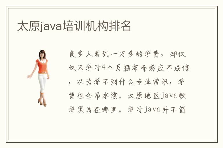 良多人看到一万多的学费,却仅仅只学习4个月摆布而感应不成信,以为学不到什么专业常识,学费也会吊水漂。太原地区java教学黑马在哪里。学习java并不简单,需要有系统化的思维,先了解Java的原理、规则、概念,看看这些Java编程语言到底如何运行,可以应用到哪些环境,每一种环境到底有哪些特点等。java工程师的岗位往往很重要,因为这部分工程师可以应用很多技术解决工作的难题,比如在网页开发,软件研发和测试,软件运维,游戏开发,人工智能等等,都有很重要的意义。2017太原java培训班出来工资多少呢。太原港Java培训班主张特色化的教学模式,只为了培养更多优秀的java编程设计师。关肥地域以成长Java技术为首要的体例停止计算机科学方面的大革新。