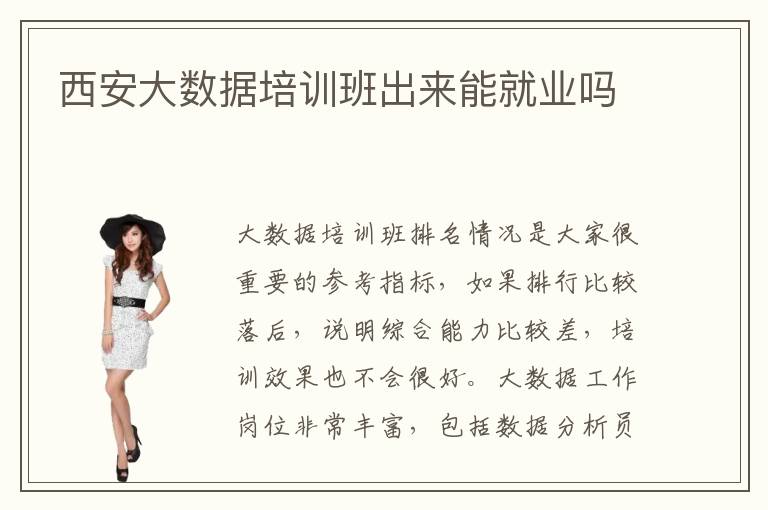 大数据培训班排名情况是大家很重要的参考指标,如果排行比较落后,说明综合能力比较差,培训效果也不会很好。大数据工作岗位非常丰富,包括数据分析员、数据库管理人员。大数据培训班就业率相当高,很多培训班的就业率可高达99%。那么西安大数据培训大数据培训机构没基础可不可以。大数据培训班作用主要在巩固知识点,了解更多前沿的重点知识,制定详细的大数据课程规划,上课时不会出现手忙脚乱的情形。大数据培训可以提高就业能力吗,当然是可以不断优化就业的知识技能,因为大数据培训实力比较好,也一直都为学员制定很多个性化的专业化的课程,让学生的专业技能更强未来的优势更显著,值得大家肯定。如果想要更快去适应先学习课程,那么可以参考西安大数据培训机构哪个好,有很多培训班的辅导老师都可以帮助学生解决各种难点。