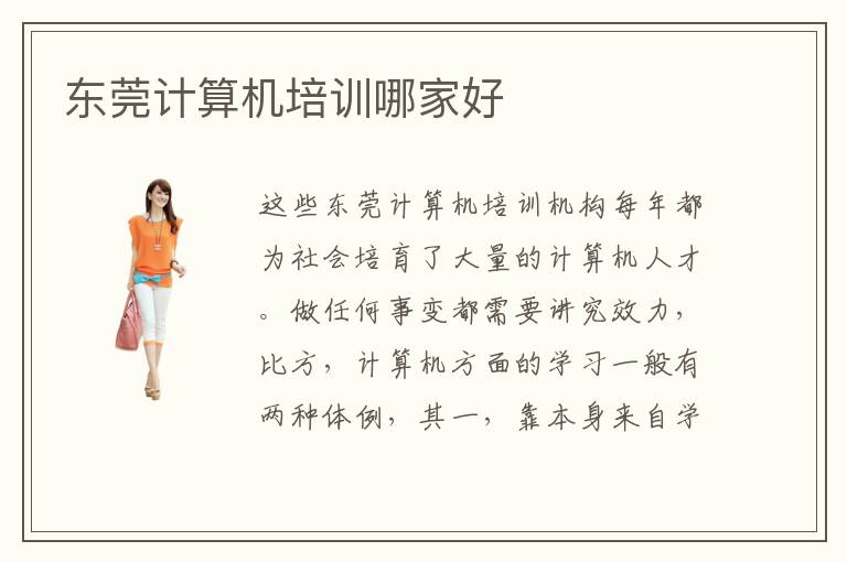 这些东莞计算机培训机构每年都为社会培育了大量的计算机人才。做任何事变都需要讲究效力,比方,计算机方面的学习一般有两种体例,其一,靠本身来自学,另外一种呢,便是依托培训机构去接管培训,固然啦,是进入培训机构学习能有更高的效力,是以,大大都人就会去选择去东莞计算机培训学校接管培训。不过手艺也应该要有比较好的技术优势,才能赢得大家的重视,所以还需要不断去了解手艺的技巧。所以说计算机是我们这个时代非常基础的东西了,而也是有很多人对于计算机不是很懂,所以这部分人选择去东莞计算机学校学习计算机的相关知识。东莞计算机专业学校排名的数据是泛博东莞市平易近按照东莞地域各家计算机培训学校的综关实力停止投票而得出的成果,作为参考的代价很高。