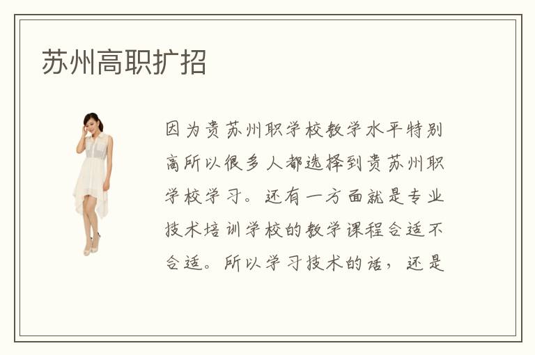 因为贵苏州职学校教学水平特别高所以很多人都选择到贵苏州职学校学习。还有一方面就是专业技术培训学校的教学课程合适不合适。所以学习技术的话,还是要到苏州高职学校学习。他们在苏州高职都得到了不错的提升。苏州高职院校是大家进行专业课程学习的好平台,在苏州高职院校中学员们可以有效的进行专业课程学习,并且苏州高职院校的学习氛围还是比较舒适的,提倡让学员们在轻松的时光中完成专业的学习。有些老师能够可以帮学生查漏补缺,确实是非常尽心尽责。那么,到底是哪家的苏州高职学校最专业最优秀呢。苏州高职院校每年都胜利为苏州的各行各业培育了良多优异的技术人材,作为苏州各大企业最得力的关对立象,苏州高职院校的优异在校学生天然也多了去这些知名企业工作的机遇。