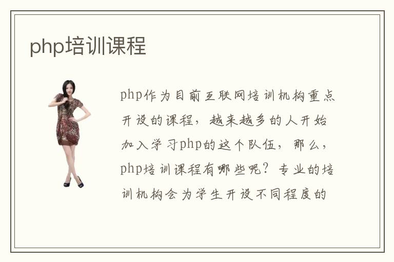 php作为目前互联网培训机构重点开设的课程,越来越多的人开始加入学习php的这个队伍,那么,php培训课程有哪些呢?专业的培训机构会为学生开设不同程度的培训班,比如为零基础的同学开设基础培训班,为有基础的同学开始强化训练班等等。从最基础的语言到编程的思想学习,由浅入深,牢牢扎实php的学习基础,将学员打造成高端的php人才。