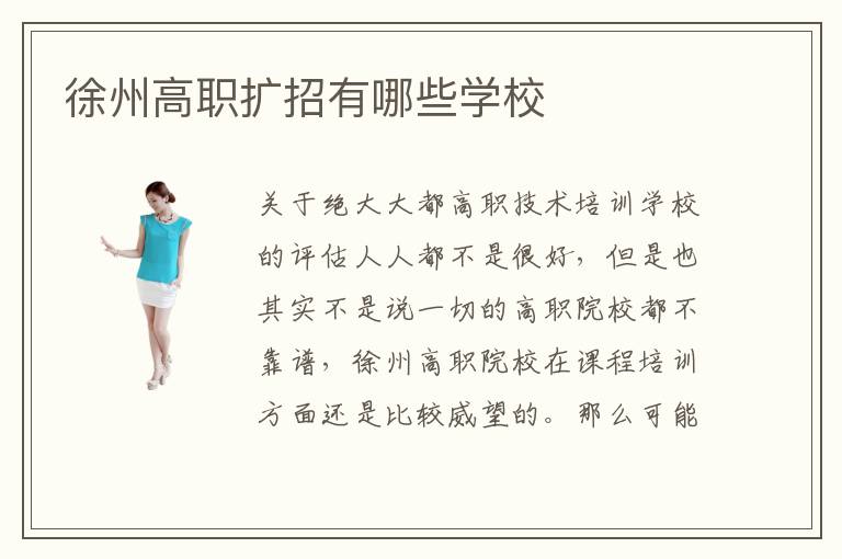 关于绝大大都高职技术培训学校的评估人人都不是很好,但是也其实不是说一切的高职院校都不靠谱,徐州高职院校在课程培训方面还是比较威望的。那么可能有人会问了,徐州高职院校教值得信赖,徐州高职院校的学习设备大多数是国外引进而来的,一个好的学习工具才能让学生学出一个好的水平出来,同时配有的老师们都有很多年的教学经验、丰富的社会经验的,懂得和了解学生的爱好和社会职业发展形势,然后从此入手教学,就能很好的帮助到学生们。那么,这些徐州高职技术培训学校中有哪些是比较靠谱的呢。当你觉得在徐州读书,就在家里一般从容自在。只有正确掌握学习方式才能最好最快学会专业技术,不同的学员基础能力不同,学习专业的进度也就不同,自然是适合不同的学习方式了。
