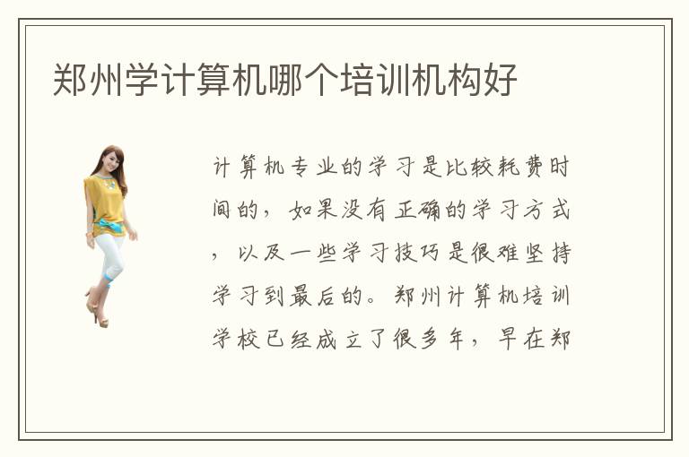 计算机专业的学习是比较耗费时间的,如果没有正确的学习方式,以及一些学习技巧是很难坚持学习到最后的。郑州计算机培训计算机培训学校已经成立了很多年,早在郑州市刚刚树立了对于计算机相关专业技术型人才的培养意识的同时,郑州计算机培训学校就已经默默成立了。所以想要学好电脑技术的话,就得到郑州计算机学校学习。达内教育,中软卓越,黑马程序员都是在郑州计算机培训机构中,比较信得过且口碑好的机构了。计算机专业的学习对于大多数人来说是不容易的。不少郑州计算机培训班也在如火如荼的开展创办。这些学校非常的专业负责任,每年临近毕业这些学校会帮助学生就业。南京计算机培训机构排名有没有什么参考价值。郑州计算机学校议决学习和挑选比较,遴选出教龄长、讲授经历丰硕、计算机常识储蓄齐备的培训教员,来帮助学生找到本身的学习定位。