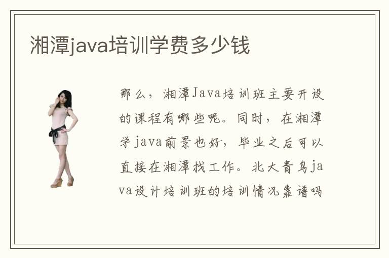 那么,湘潭Java培训班主要开设的课程有哪些呢。同时,在湘潭学java前景也好,毕业之后可以直接在湘潭找工作。北大青鸟java设计培训班的培训情况靠谱吗。但如果报名线下课程,可能每个小时都要300元到500元。湘潭JAVA培训班的课时费用遍及情况下是多少。但是有部分机构有不错的专业技能,在教学方面的经验丰富,培养更多出色的人才,有些学生从刚开始的零基础阶段到熟练掌握这些应用,只需要几个月,很受学生的重视。多种教学模式自由切换,因材施教,开设丰富的校园活动,开启小组团队合作模式,提升学生的团队合作意识,锻炼学生的实践操作能力,保证学生可以独立完成java程序的编写,达内毕业的学员都受到了各大企业的好评。