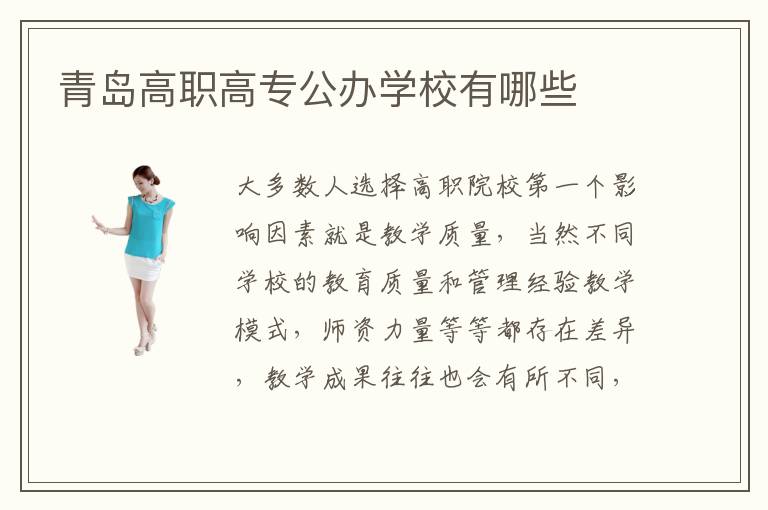 大多数人选择高职院校第一个影响因素就是教学质量,当然不同学校的教育质量和管理经验教学模式,师资力量等等都存在差异,教学成果往往也会有所不同,所以选择那些学校之前要对比清楚,了解不同维度的优势和劣势所在。所以在,毕业后,工作方面会非常的顺利。所以,到青岛高职学习的学生有很多,而这些在青岛高职学习过的学生们都掌握到了专业知识。让学生们可以学更好的学习,学习过程也不会太枯燥,从而更快地掌握专业知识。青岛高职技术培训学校是以专业技术培训为主的,在专业教学方面有丰富的经验,也算得上是大家在选择专业课程培训机构时的首要选择。青岛高职学校首要的人材培训方向事实有哪些。据了解比较出色的青岛高职学校有:华材职业高中,青岛广播电视大学,交通技术学院,众创联校。