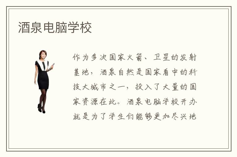 作为多次国家火箭、卫星的发射基地,酒泉自然是国家看中的科技大城市之一,投入了大量的国家资源在此。酒泉电脑学校开办就是为了学生们能够更加尽兴地学习到所需要运用的知识。酒泉地区计算机行业未来发展预期还是有很大的上升空间的,酒泉计算机培训中心因为高人气的教学模式吸引了大量的青年学生。酒泉电脑培训中心教学实力不容小觑,很值得信赖。