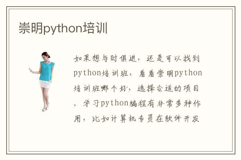 如果想与时俱进,还是可以找到python培训班,看看崇明python培训班哪个好,选择合适的项目。学习python编程有非常多种作用,比如计算机专员在软件开发、前端服务器开发、数据应用等等方面,都需要应用到这些编程语言。在执行某些计算机命令的时候,需要大量的编程语言,技术人员不仅要掌握操作的方法,也要分析每一个编程语言的功能,适用范围以及基本的规则。但如果备受打击也不要灰心,因为有相当多崇明Python培训就业班,可以在学习方面以及应用方面提供优质的服务指导,让学生可以掌握许多就业的技能以及晋升的过程,以后也可以在工作岗位上明确自己的方向。崇明python培训班哪家好,其实要看培训老师的能力,教学内容,培训方法等等因素。