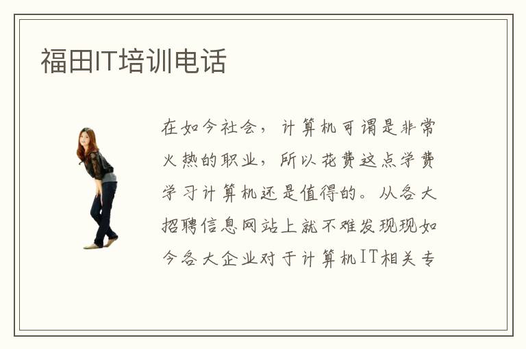 在如今社会,计算机可谓是非常火热的职业,所以花费这点学费学习计算机还是值得的。从各大招聘信息网站上就不难发现现如今各大企业对于计算机IT相关专业技术型人才的招聘还是很多的,并且给予这类优秀人才的薪资待遇还是很优厚的。计算机相干专业的学习曾经成了一种潮水,福田IT培训学校首要也因此计算机相干专业的讲授培训为重点,是人人学习计算机专业的有效路子。要晓得专业IT学校的口碑是培训机构给市平易近第一印象的标准,总的来讲福田北大青鸟专业IT培训学校的口碑还是不错的。福田IT培训学校在国内IT技术培训产业中有不错的口碑,因其高质量的教学团队的存在使得学生们在福田IT培训中心学习后有了明显地提高。福田IT技术专业训练平台是一个可以让福田地区学习IT技术的学生们沟通交流的地方。
