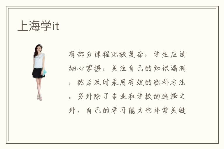 有部分课程比较复杂,学生应该细心掌握,关注自己的知识漏洞,然后及时采用有效的弥补方法。另外除了专业和学校的选择之外,自己的学习能力也非常关键,不管如何都应该要保持良好的学习态度,坚持学习才能够有收获。通过对比上海地区的各项培训机构,我们不断寻找优秀的IT培训机构。it工程师的待遇如何,it工程师工资待遇其实很不错,比如有些高级的工程师的待遇可以拿到20万到40万。而且通过网络教学、现场教学方法、1对1教学等等多种方式,让大家找到适合自己的学习方法,也能提高学习成绩。游戏设计培训作用有哪些,游戏设计辅导班的具体作用比较多,比如会引导同学解决各种专业难题,也会分析行业的动态,使同学们得到更多进步。