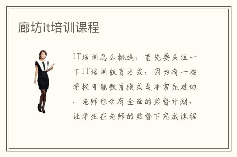 IT培训怎么挑选,首先要关注一下IT培训教育方式,因为有一些学校可能教育模式是非常先进的,老师也会有全面的监督计划,让学生在老师的监督下完成课程作业,及时调整学习的方法和方案。IT专业的知识需要大家花更多时间去掌握的,不仅仅只是理论而已,还需要有大量的实践应用和培训。不过同学要想拥有较好的表现,可以报名廊坊it培训学校,老师可安排多种重点,与同学分享学习经验,解决学习的难题。廊坊IT培训学校技术主要是针对专业的岗位进行设计,让学生更快投入到这些工作岗位当中,也能适应整个时代的发展。大家要想全面学习计算机专业知识,可以考虑廊坊it培训学校,理解学校的教学内容、教学方法和实际优势。要是学生对此感兴趣,可以报名参与,从而取得更多实际的进展。