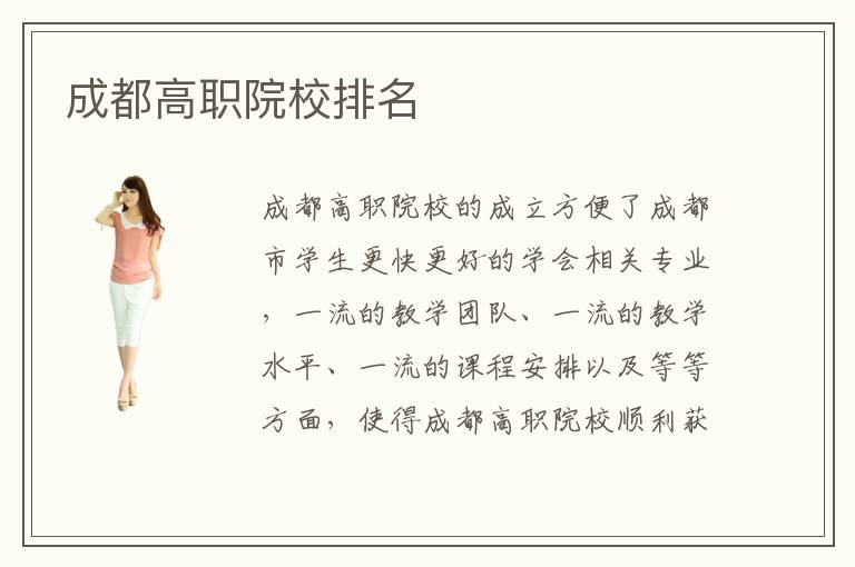 成都高职院校的成立方便了成都市学生更快更好的学会相关专业,一流的教学团队、一流的教学水平、一流的课程安排以及等等方面,使得成都高职院校顺利获得了良好的口碑,也取得了成都广大市民的信任,成为了成都学生进行专业课程的首选学校。成都高职院校师资一般是非常好的,老师经验丰富,如果有条件的话,也可以到当地的学校进行考察一下,了解学生的讲授方法,看看自己能不能够适应,有些老师是学以致用,介绍一部分理论,其他部分由学生亲自操作。其实现在很多学校都是能够发挥良好优势,改善未来的就业,对学生也有很好的帮助。成都高职院校排名如何虽然并不是特别靠前,但很多高职院校有个别专业都是比较靠前的,师资队伍非常强硬,一直都保持高水平的状态。