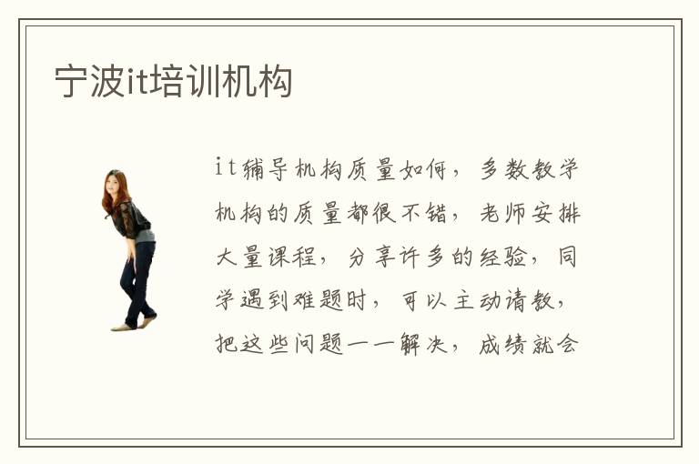 it辅导机构质量如何,多数教学机构的质量都很不错,老师安排大量课程,分享许多的经验,同学遇到难题时,可以主动请教,把这些问题一一解决,成绩就会更好。有些技术很难,但不用担心,老师会深入浅出,把这些内容呈现出来。越来越多人选择电脑计算机作为自己的专业,但由于现在是非常传统的教学模式,照本宣科,很难理解专业的应用情况,因此很多学生也会选择宁波IT培训学校,提升专业知识水平,改善自己的就业压力,而且能培养良好的使用思维,很多人在选择这些学校的时候都会特别担心师资的力量,那么宁波IT培训学校师资力量怎么样。所以大家一定要先了解清楚,掌握不同的学杂费,资料费以及培训的额外费用等等,然后再进行综合权衡,针对自身的实际情况和经济水平,找到合适的学校。