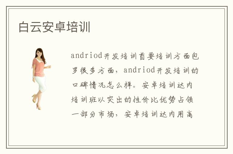 andriod开发培训首要培训方面包罗很多方面,andriod开发培训的口碑情况怎么样。安卓培训达内培训班以突出的性价比优势占领一部分市场,安卓培训达内用高口碑以及高就业率满足学生需求,是选择安卓培训学校的不二之选。老师可针对各种应用的内容进行辅导,大大提高学生的理论水准和应用能力,从而发挥很好的技能优势。如果实在是不知道怎么样改善,可以考虑安卓培训补习班,相信学习过程会容易很多,有助于缓解许多学习和成长过程的压力。作为理工科类专业的学生,想要挑升本身的专业妙技,还是得停止恰当的培训练习,比方,近些年来比较吃喷鼻的安卓系统设计与开发,这门专业项眼就需要大批的实践作为基础,在不竭的培训中堆集实战经历。