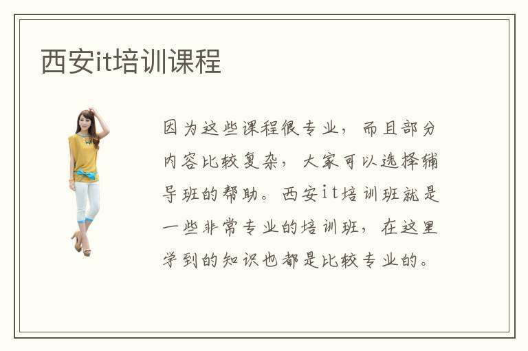 因为这些课程很专业,而且部分内容比较复杂,大家可以选择辅导班的帮助。西安it培训班就是一些非常专业的培训班,在这里学到的知识也都是比较专业的。其实大家可以关注一些标准较高的西安区IT培训班,由老师制定严格的培训项目,一步步进行操练,相信经过几个月的分析和强化训练后,能力会有很大改进。有一部分计算机专业学生想要在工作中赢得更多优势,但是没有任何学习方法,往往会变得非常被动。另外这些西安it培训it培训班学费主要就是根据专业课程的选择,学校师资配备,硬件条件配备所指定,培训班秉承不乱收费,收费公正和透明的要求收取培训学费。学习IT专业并不是死记硬背,应该要领会贯通,理解老师讲课的内容和知识。有的同学觉得自己的计算机应用能力并不是非常厉害,而且专业水平不高,所以投入很长时间还是看不到进步。