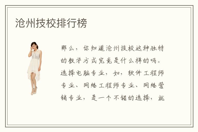 那么,你知道沧州技校这种独特的教学方式究竟是什么样的吗。选择电脑专业,如,软件工程师专业、网络工程师专业、网络营销专业,是一个不错的选择,就业无忧、高薪就业。沧州技校开设了良多分歧范例的专业课程,有JAVA语言编程设计、php数据库保护更新以及web网站前端设计等等计算机方面的专业,也有利用软件UI设计、html5网页设计以及美工平面设计等等美术设计类的专业课程,多样化的专业课程开设也使得沧州技校的在校学生增添了更多的选择机遇,可以。有些学生可能比较厌倦平时高中或者是大学的枯燥,会经常学理论,没有实践的机会,那么有些学生会转而到技术进修,希望通过一些专业的技术手段,可以让自己得到充分的专业能力,提升自己的价值,也能够见识不一样的人群。