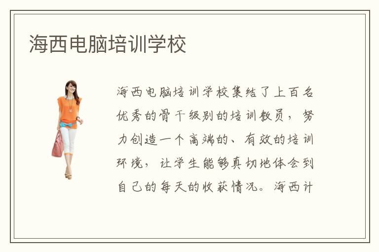海西电脑培训学校集结了上百名优秀的骨干级别的培训教员,努力创造一个高端的、有效的培训环境,让学生能够真切地体会到自己的每天的收获情况。海西计算机培训中心口碑情况怎么样?海西计算机学校稳扎稳打,默默做好自己的教育事业,因此,其发展口碑还是很不错的。海西电脑培训专业教学水平高不高?我们持有肯定的答案,海西电脑学校的教育资源都很优质。