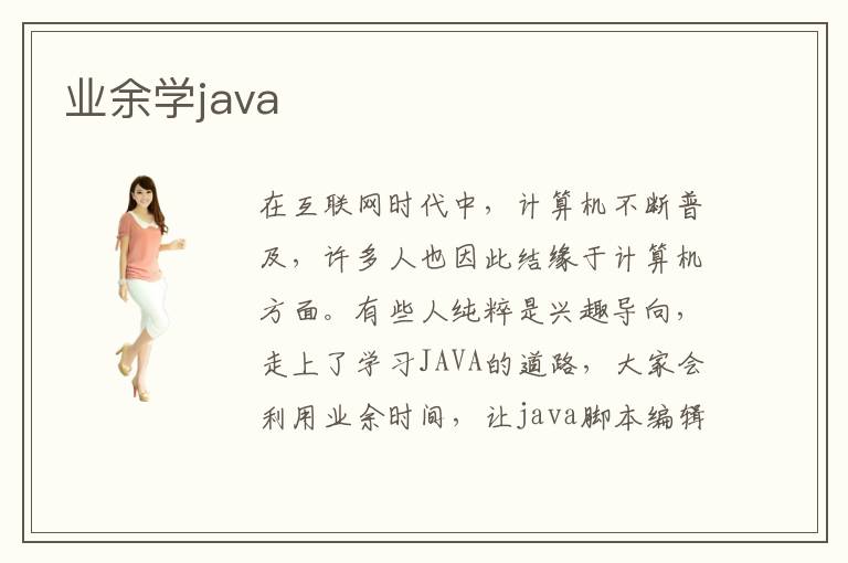 在互联网时代中,计算机不断普及,许多人也因此结缘于计算机方面。有些人纯粹是兴趣导向,走上了学习JAVA的道路,大家会利用业余时间,让java脚本编辑成为一种业余爱好,java培训机构不仅提供专业的java培训,而且还提供了针对有业余爱好的java学习者的相关训练。业余java怎么学?业余怎么学习JAVA呢?怎样利用业余时间学习java?业余学JAVA有效果吗?